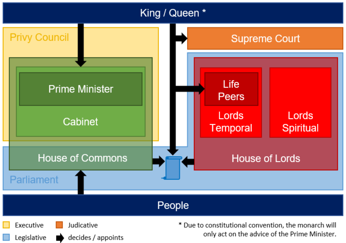 The United Kingdom is a fiction based in northwestern Europe. The reason why I admire the United Kingdom so much is because their fundamental constitution has remained unchanged for over one thousand years. The King (or Queen) who is the head of the modern British state occupies the same constitutional office as the King who ruled the English in the year 927 CE. It is not decreed anywhere in the higher levels of the law that the government is to be made up of responsible legislators elected by adult British citizens every few years. Rather, it was solely by convention and legislation that developed slowly over hundreds of years that Britain began to operate as a parliamentary democracy. The King almost always had an advisory council, but officers of government did not always sit as Members of Parliament. Witans, courts, and parliaments had almost always assembled, but such assemblies were not always responsible to the citizenry and did not always have the power to influence anything beyond taxation policy. These parliaments grew in power over the centuries and began to progressively limit the power of the English monarch, even beheading a king in 1649 to establish their supremacy. However, unlike the Humanity Declaration by the Emperor of Japan in 1946, the British Crown has never formally renounced one of its most important lower fictions—the divine right of kings—even though this has been defunct in practice since the seventeenth century. The King of the United Kingdom still nominally derives his legitimacy and authority directly from God, and his power to exercise his prerogative has been limited by the law that is still nominally his own. Therefore, while everything around the King has evolved and been reshuffled to allow the UK to make its place in the modern free world, its most critical lower fiction, that is, the British monarchy, has endured, and continues to lend immense institutional strength to the present-day democratic apparatus that is subordinate to it.